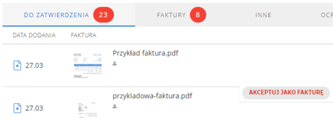 W zakładce “do zatwierdzenia” akceptujesz zdjęcie jako fakturę. Jeśli zaakceptujesz jako INNE - nie będą widoczne dla księgowej